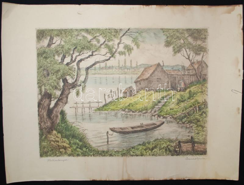 Conrad Gyula (1877-1959): Halásztanya, színezett rézkarc, papír, jelze... https://www.darabanth.com/hu/181-Gyorsarveres/181.0/Festmeny-mutargy-papirregiseg-egyeb/Festmenyek-es-grafikak~200017/Conrad-Gyula-1877-1959-Halasztanya-szinezett-rezkarc-papir-jelzett-apro-serules-29x3~II560080