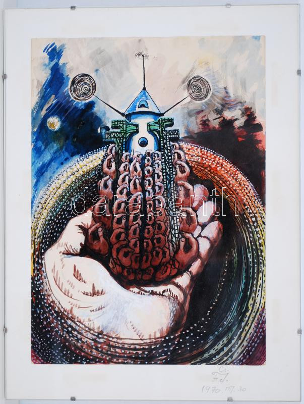 Ferenczi József (Vakok Állami Intézete, 1970): Épító kezek; Kompozíció... https://www.darabanth.com/hu/181-Gyorsarveres/181.0/Festmeny-mutargy-papirregiseg-egyeb/Festmenyek-es-grafikak~200017/Ferenczi-Jozsef-Vakok-Allami-Intezete-1970-Epito-kezek-Kompozicio-gombbel-Tustoll-a~II632765