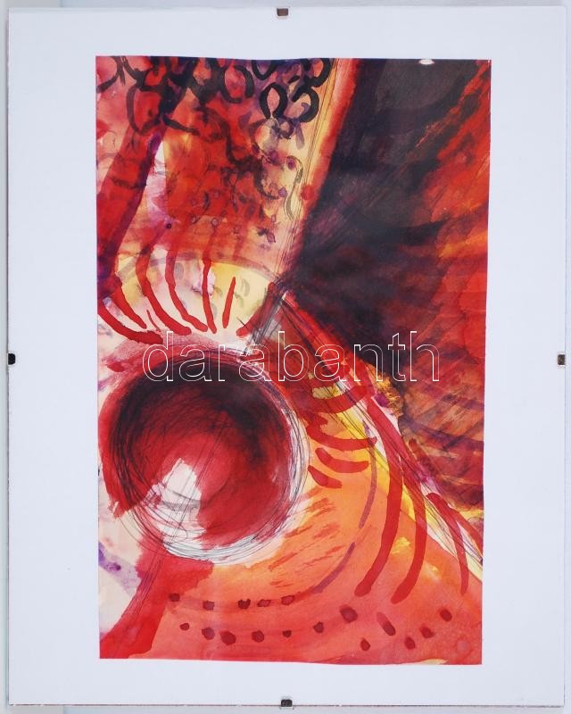 Leírás: Ferenczi József (Vakok Állami Intézete, 1970): Épító kezek; Kompozíció gömbbel. Tus/toll, akvarell, papír, üvegezett, 40x30cm, 30x24cm