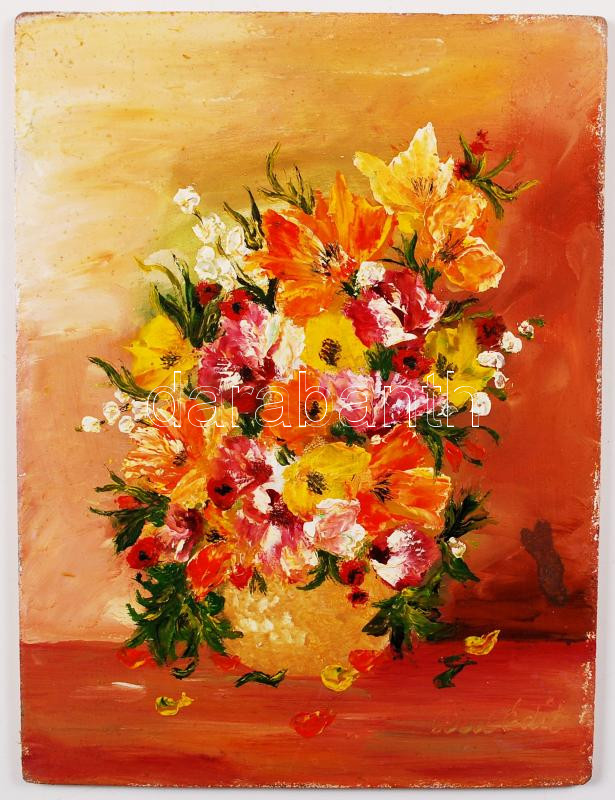 Leírás: Heil Edit: Virágcsendélet. Olaj, karton, jelzett, 15×20 cm