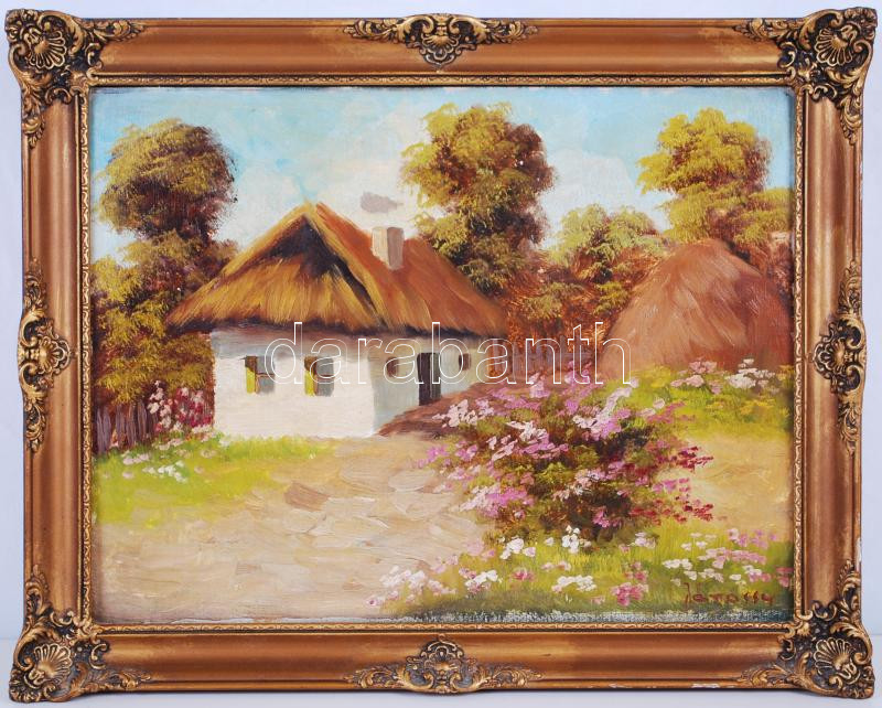 Jánossy jelzéssel: Parasztház. Olaj, karton, keretben 34×42 cm https://www.darabanth.com/hu/181-Gyorsarveres/181.0/Festmeny-mutargy-papirregiseg-egyeb/Festmenyek-es-grafikak~200017/Janossy-jelzessel-Paraszthaz-Olaj-karton-keretben-34C39742-cm~II648449