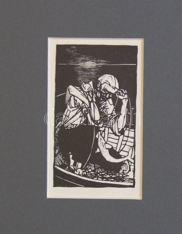 Leírás: Kondor Béla (1931-1972): Az öreg halász és a tenger Fametszet 7x11 cm, paszpartuban 21x30 cm