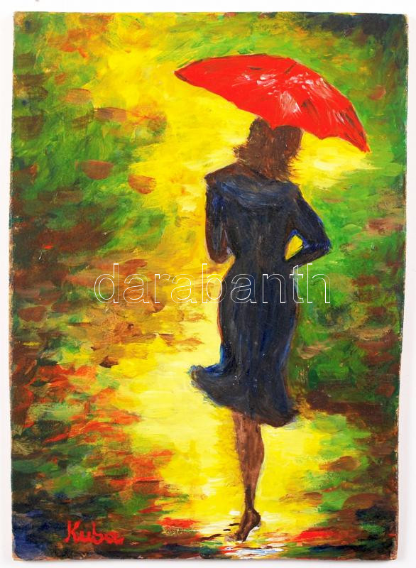 Kuba jelzéssel: Nő esernyővel. Olaj, farost, 18×13 cm https://www.darabanth.com/hu/181-Gyorsarveres/181.0/Festmeny-mutargy-papirregiseg-egyeb/Festmenyek-es-grafikak~200017/Kuba-jelzessel-No-esernyovel-Olaj-farost-18C39713-cm~II629870