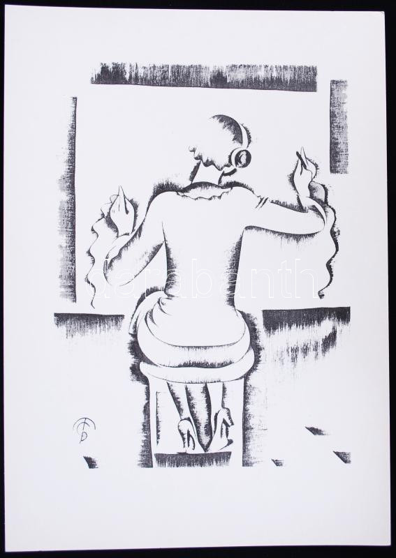 Leírás: Molnár C. Pál (1894-1981): Telefonos kisasszony, kis szériás ofszet-karton, jelzett, 21x29 cm