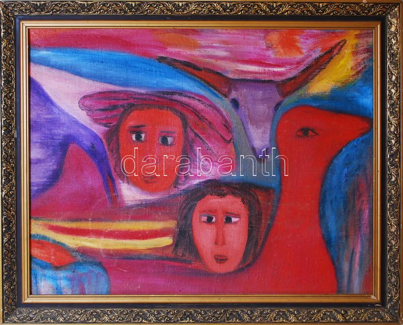 Leírás: Oláh Jolán (1932-2005): "Mégsem ojan aminek Elképzeltem". Olaj, vászon, jelzés nélkül, keretben 70×90 cm