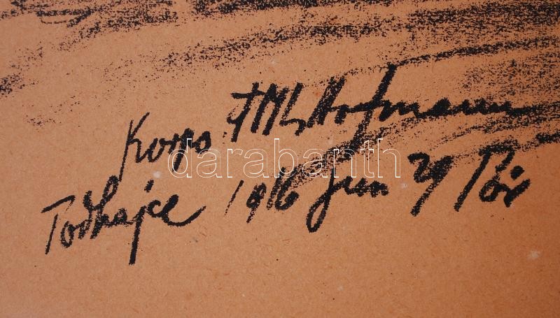 Leírás: Pór Bertalan (1880-1964): Harctéri sorozatok. Litográfia, papír, jelzett, üvegezett keretben 44×60 cm