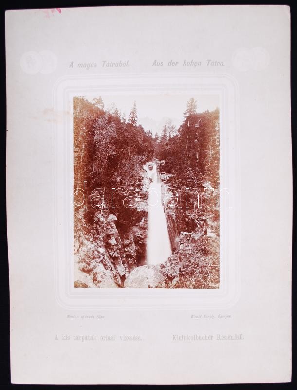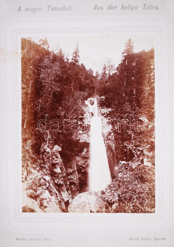 cca 1880 A magas Tátrából - Aus der hohen Tátra: A kis tarpatak óriási vizesése - Kleinkolbacher Riesenfall. Divald Károly eperjesi műterméből, kartonra kasírozva, 32x24cm