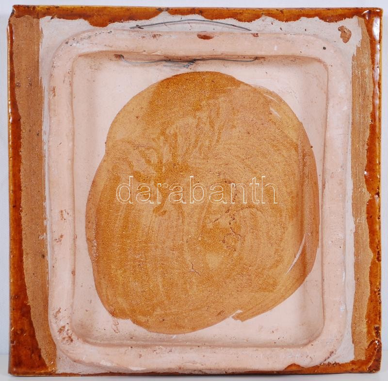 Leírás: Beépíthető figurális életképet ábrázoló mázas kerámia csempe, jelzett, 21×21 cm