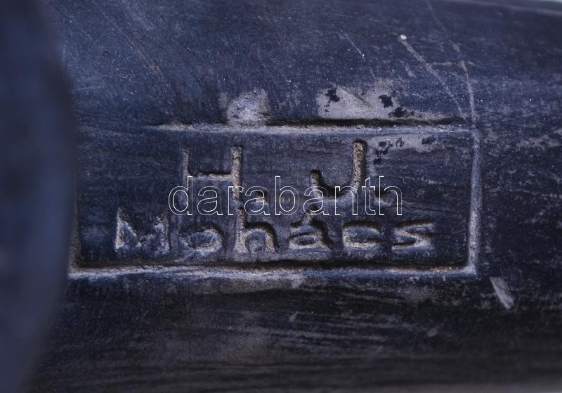 Leírás: Horváth János (1905-1975), nagyméretű, jelzett fekete kerámia vizeskorsó /