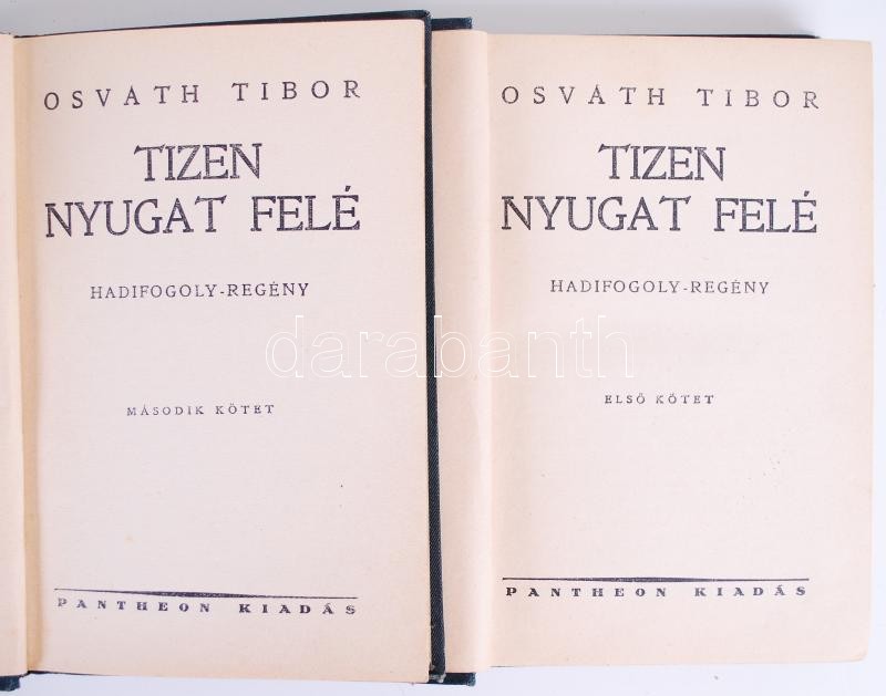 Frontregények: Osváth Tibor. Tízen nyugat felé I.-II. Bp., én. Pantheo... https://www.darabanth.com/hu/181-Gyorsarveres/181.0/Festmeny-mutargy-papirregiseg-egyeb/Konyvek-Militaria-katonasag~200008/Frontregenyek-Osvath-Tibor-Tizen-nyugat-fele-I-II-Bp-en-Pantheon~II648766