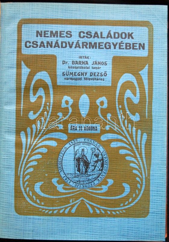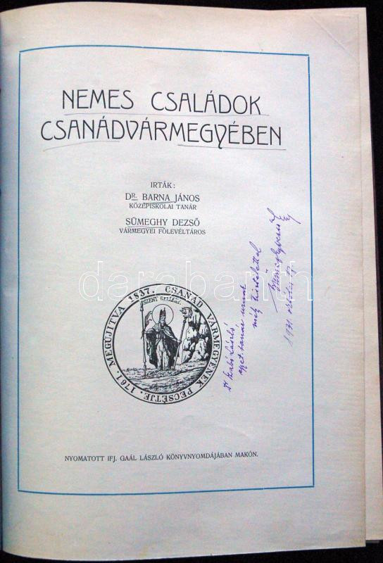 Barna János-Sümeghy Dezső: Nemes családok Csanádvármegyében Makón, 1913. ifj. Gaál László ny. 242p. Korabeli enyhén sérült gerincű álbordás félbőr védőkötésben. Ex librissel