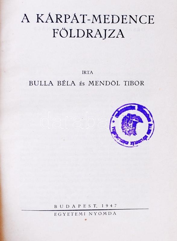 Bulla Béla és Mendöl Tibor: A Kárpátmedence földrajza. Budapest 1947. ... https://www.darabanth.com/hu/181-Gyorsarveres/181.0/Festmeny-mutargy-papirregiseg-egyeb/Konyvek-Utazas-varosok~200018/Bulla-Bela-es-Mendol-Tibor-A-Karpatmedence-foldrajza-Budapest-1947-Egyetemi-Nyomda~II644974
