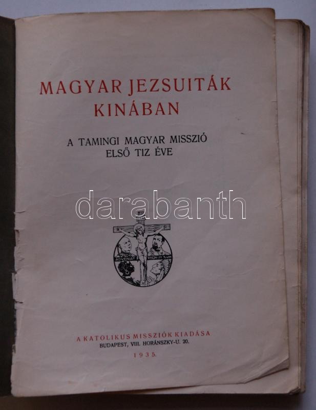 Leírás: Magyar jezsuiták Kínában. A tamingi magyar misszió első tíz éve. A katolikus missziók kiadása. Bp., 1935. Kötés megviselt állapotban, egy kép hiánnyal