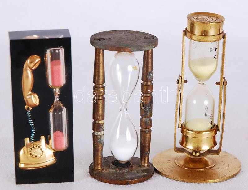 Leírás: Homokóra tétel: Retró telefonos-, jelzett réz-, bronz, összesen: 3 db