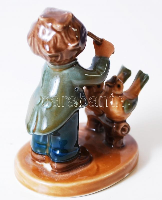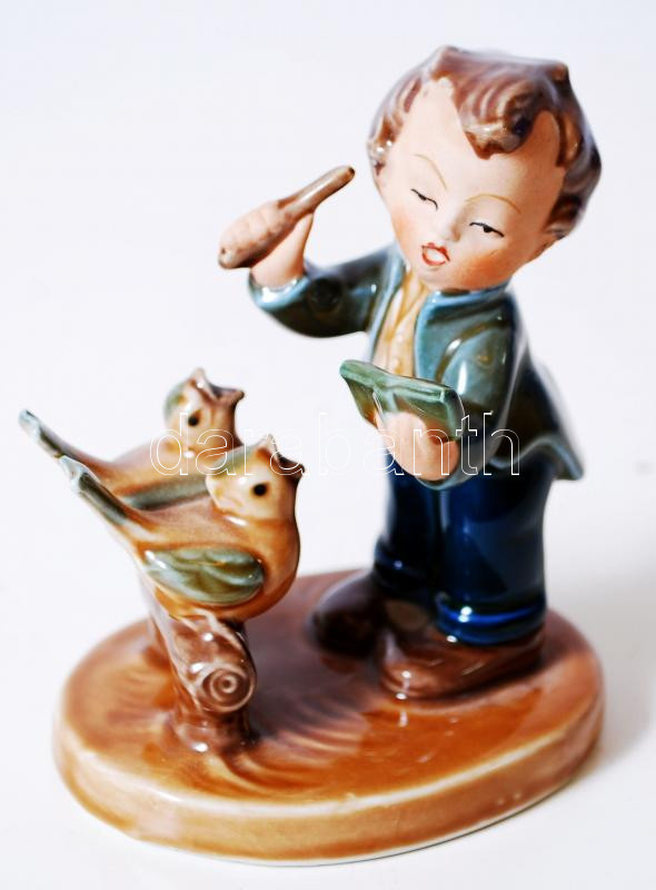 Leírás: Lippelsdorf, karmester fiú és az éneklő madár pár, kézzel festett, jelzett, hibátlan, m:10 cm, h:9 cm/