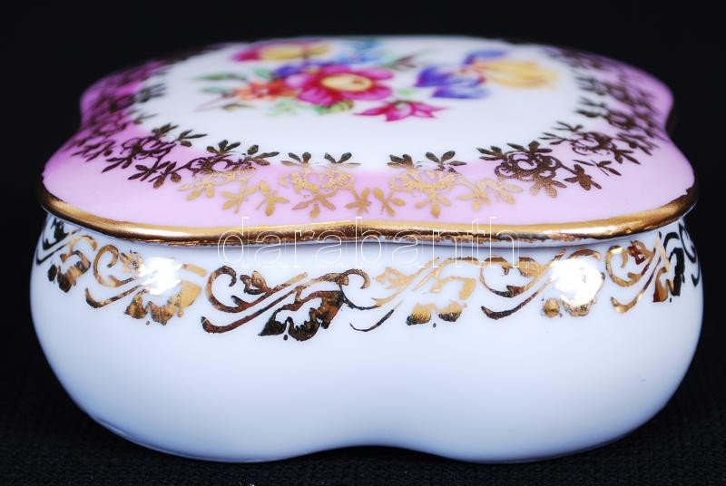 Matricás, aranyozott, jelzett porcelán ékszeres dobozka /