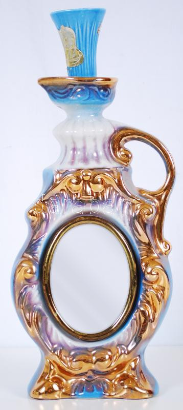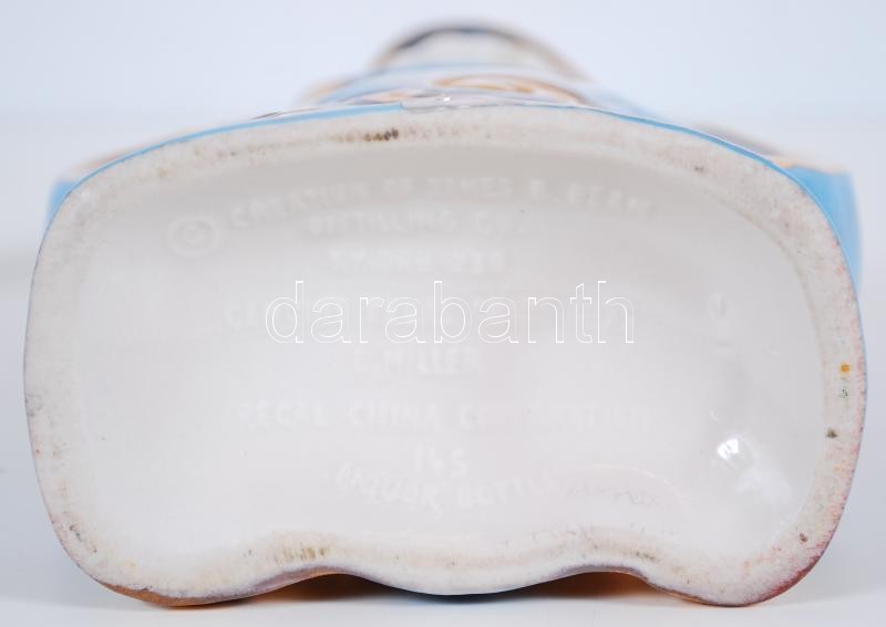 Leírás: Porcelán tükrös, kupicás palack, hibátlan, jelzett Beam Bourbon whisky, C. Miller, m:33 cm