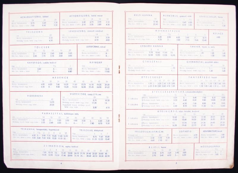 Leírás: 1943 Budapest VI., Zomért zománcedény-árjegyzék