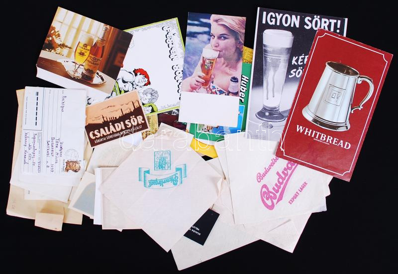 Leírás: 65 klf sör témájú nyomtatvány és reklám, címkék szerte a világból / Beer commercials