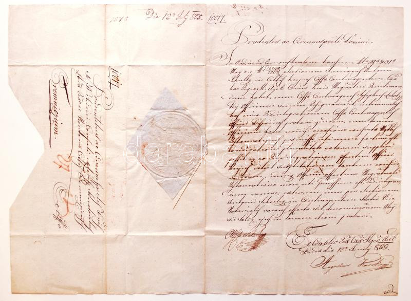 1809 Ex offo letter of the Governing Council with autograph signature of count Michael Nadasdy. Complete seal