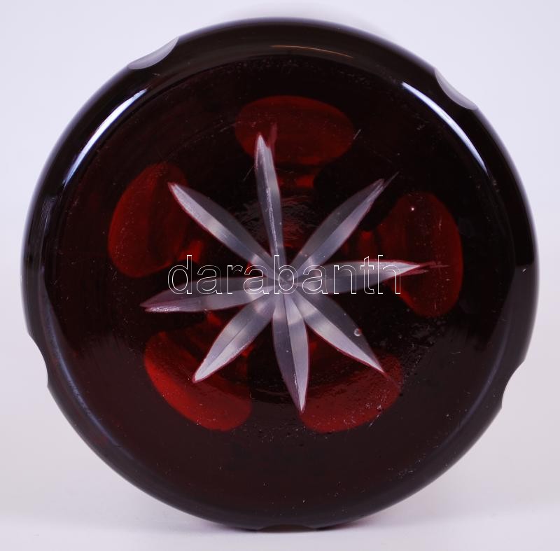Leírás: Rubinvörös kupa, többrétegű, kézzel festett, hámozott, csiszolt, hibátlan m:20 cm