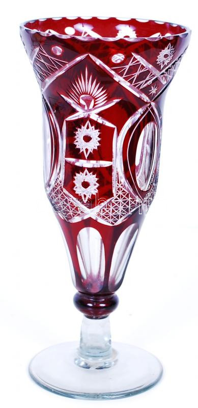 Leírás: Rubinvörös nagy kehely, több rétegű, csiszolt, hibátlan, m:27 cm/ Glass chalice, flawless condition