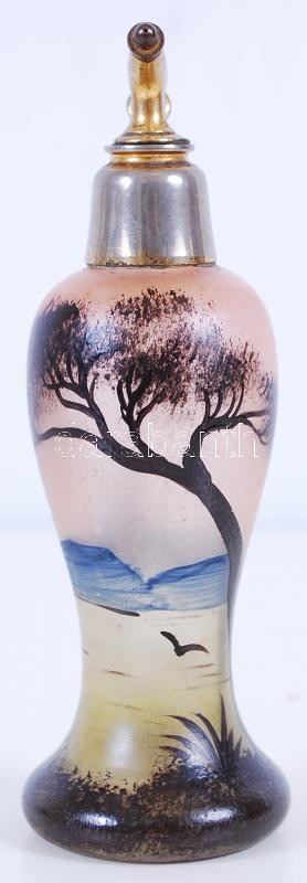 Leírás: cca 1900 Parfűmösüveg. Kézzel festett, szignált / Perfume bottle 15 cm