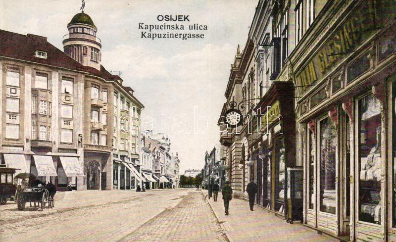 Eszék Kapucinska street, the shop of Glesinger https://www.darabanth.com/hu/181-Gyorsarveres/181.0/Kepeslapok/Horvatorszag-Delvidek~400009/Eszek-Kapucinska-street-the-shop-of-Glesinger~II648391