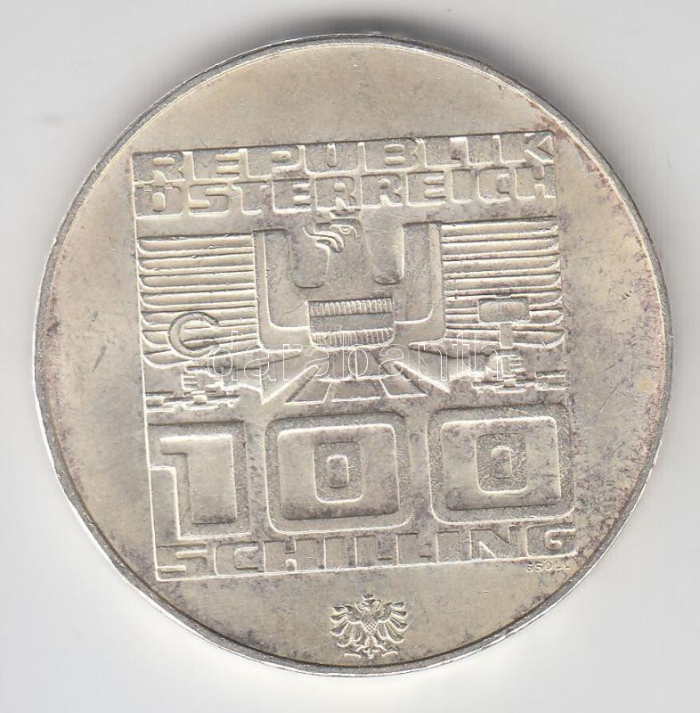 Austria 1976. 100 Schilling Ag "Winter Olympics Innsbruck / Buildings and Olympic logo" C:XF