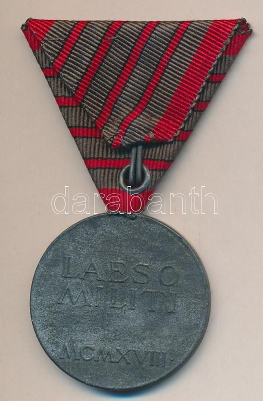 Leírás: 1918. Laeso Militi - Sebesültek Érme cink kitüntetés mellszalaggal. Szign.: R. Placht T:2