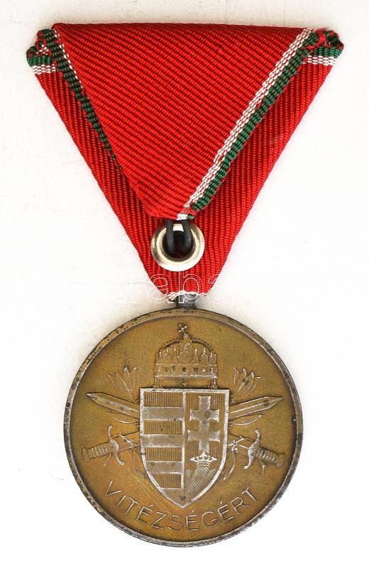 Hungary 1939. "Bronze Medal for Bravery" Brass-plated zinc decoration with ribbon C:VF