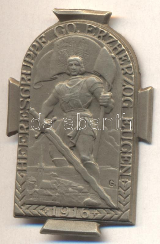 Austro-Hungarian Monarchy 1916. "HEERESGRUPPE GO. ERZHERZOG EUGEN 1916" tombac cap badge (42x27mm) sign: G., without pin C:XF