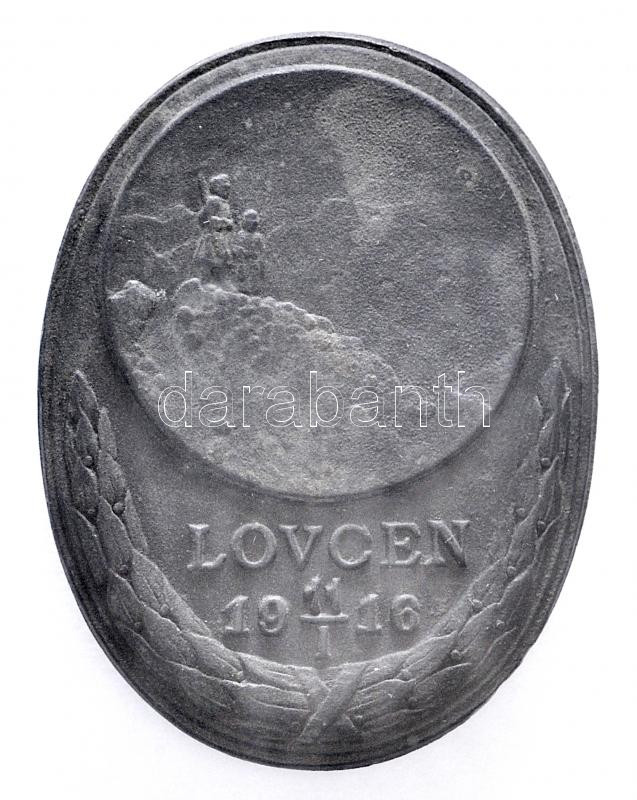 Leírás: Osztrák-Magyar Monarchia 1916. "LOVCEN 1916 11/I" cink sapkajelvény (42x32mm) készítő: BWS; függőleges tű T:2-