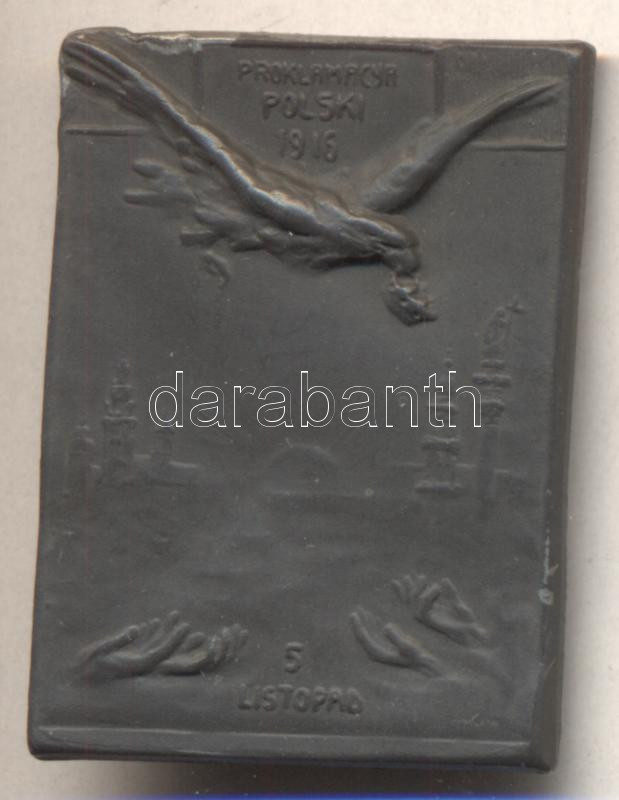 Austro-Hungarian Monarchy 1916. "Proklamacya Polskia 1916 - 5 Listopad" zinc cap badge (35x26mm) maker: Jan Maleta; without pin C:VF