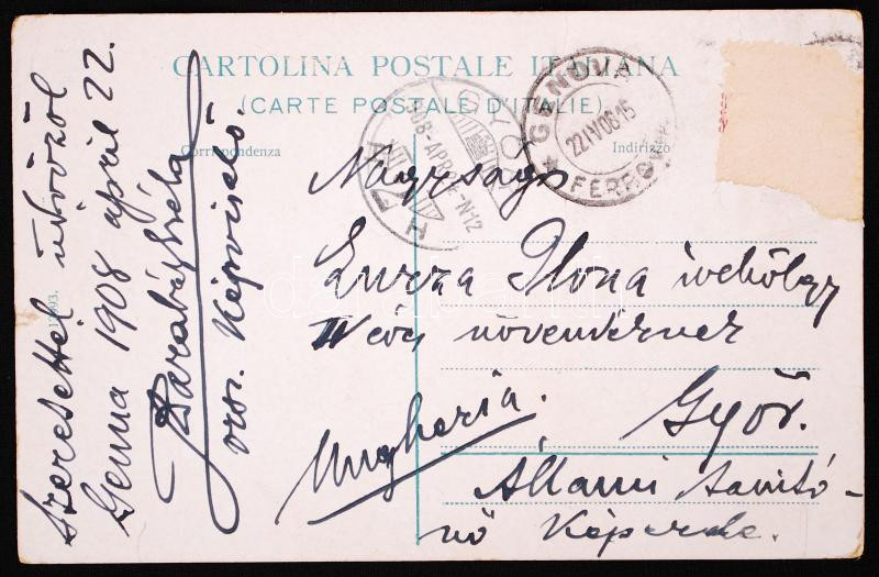 Leírás: 1908 Barabás Béla szenátor, jogász, politikus saját kézzel írt képeslapja