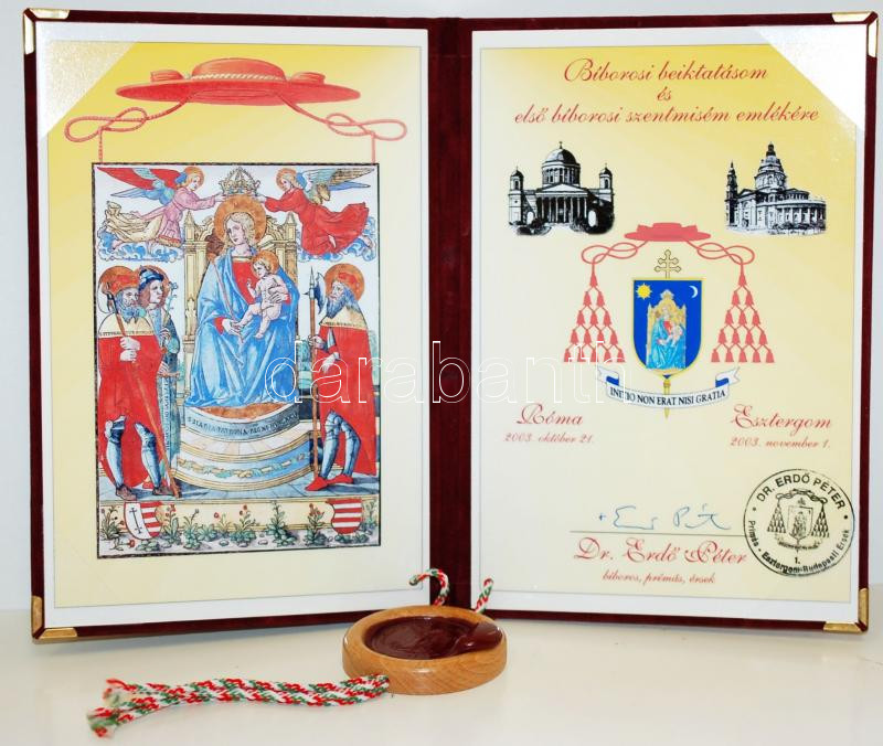 2003 Dr. Erdő Péter prímás, Esztergom-Budapesti érsek ünnepélyes beiktatása (Róma) és első bíborosi szentmiséje (Esztergom) emlékére kiadott sorszámozott emléklap és rézkarc igényes borítóban