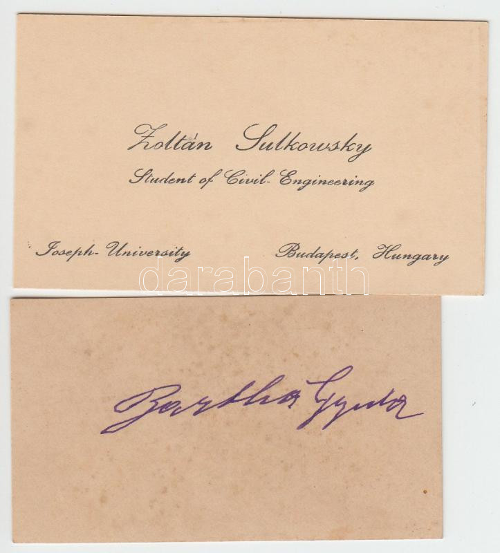Leírás: Bartha Gyula és Sulkowszky Zoltán a világot megkerülő motorosok névjegykártyái. Bartháé kézzel írt