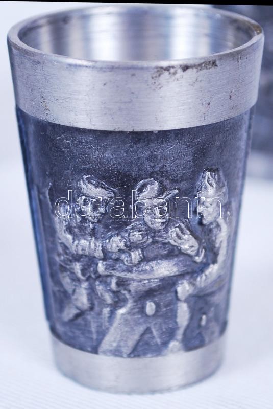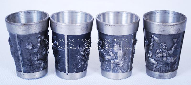 Leírás: 4db, mulatság jeleneteivel díszített, jelzett ónkupica /