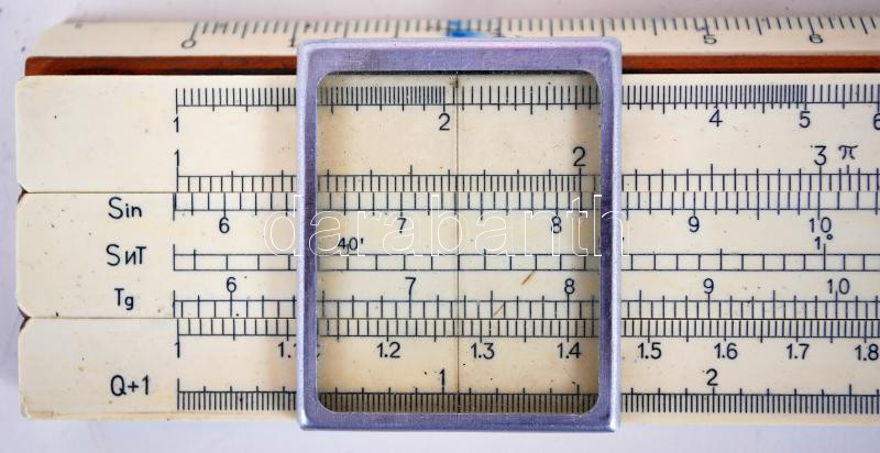 Szovjet logarléc, eredeti tokjában, h:30 cm