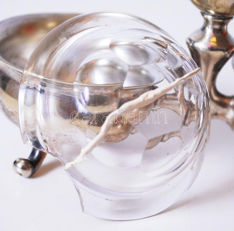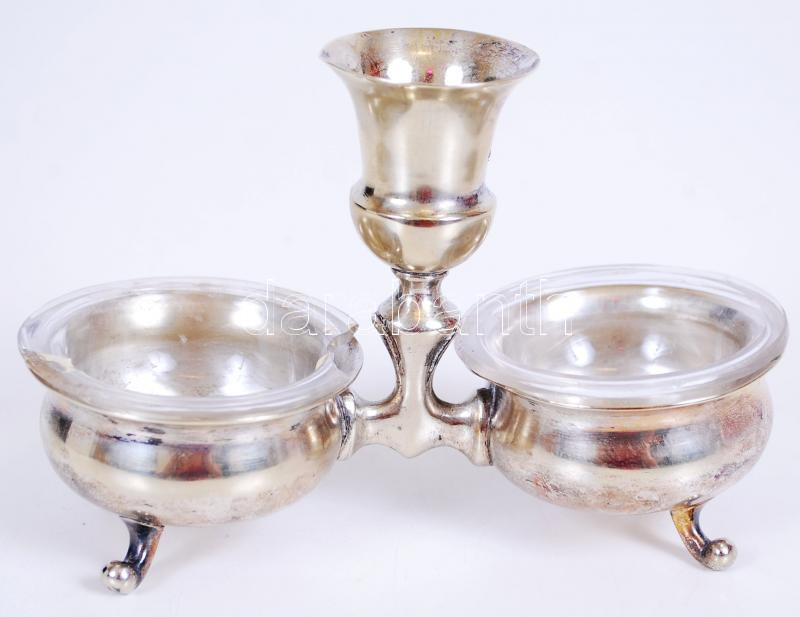 cca 1900 Ezüstözött alpakka fűszertartó eredeti üvegbetéttel (az egyik betét törött) /