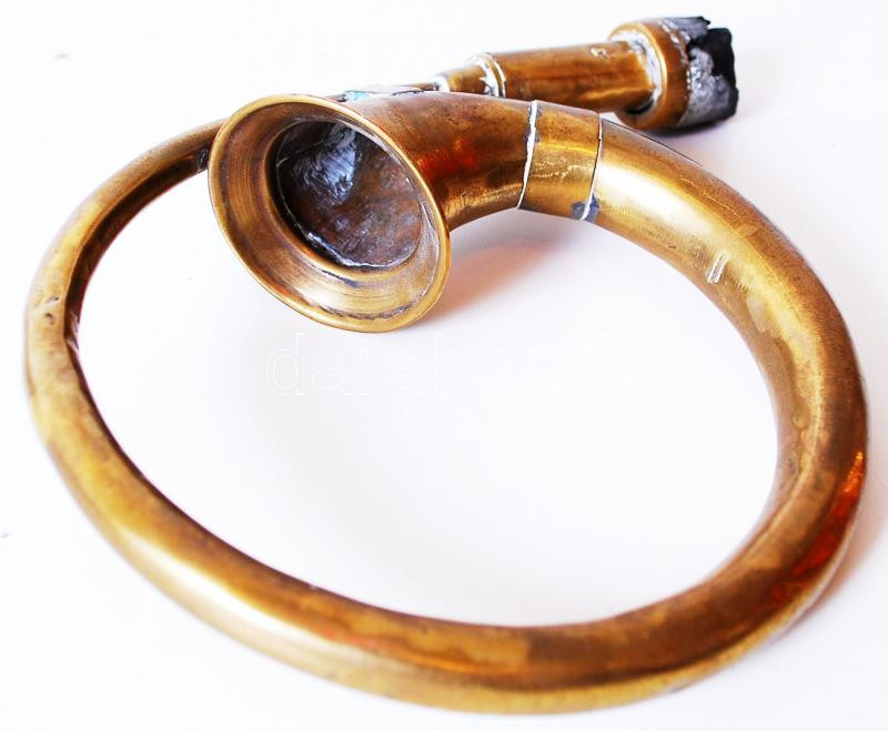 Brass horn, 20x15cm https://www.darabanth.com/hu/182-Gyorsarveres/182.0/Festmeny-mutargy-papirregiseg-egyeb/Bolhapiac~400013/cca-1900-Rez-autokurt--3Cbr3EBrass-horn-20x15cm~II655453