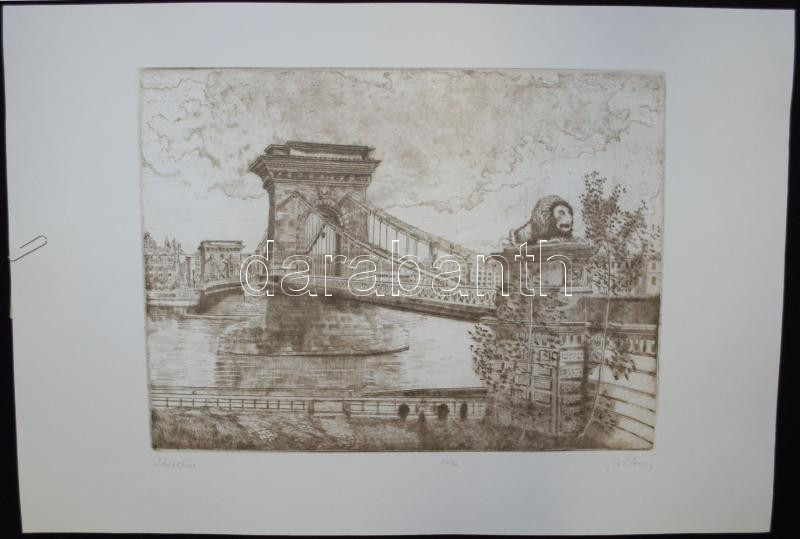 Leírás: Blahos Rudolf (1917-1986): Lánchíd, rézkarc 77/100, papír, jelzett, 30×40 cm, keret nélkül