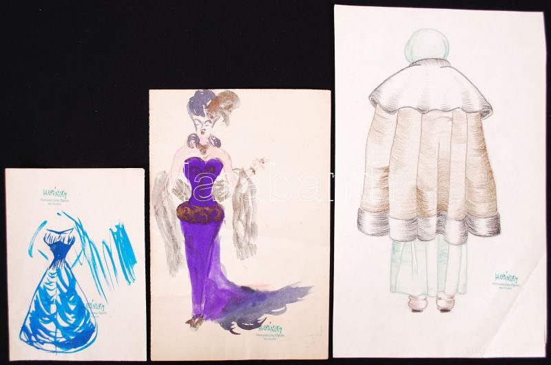 Leírás: Hornyánszky pecséttel: 3 db rajz különféle technikákkal, 14×10-27×17 cm