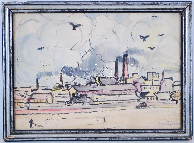 Horváth József: Ipari táj. Vegyes technika, papír, jelzett, üvegezett ... https://www.darabanth.com/hu/182-Gyorsarveres/182.0/Festmeny-mutargy-papirregiseg-egyeb/Festmenyek-es-grafikak~400002/Horvath-Jozsef-Ipari-taj-Vegyes-technika-papir-jelzett-uvegezett-keretben-40C39730-cm~II619774