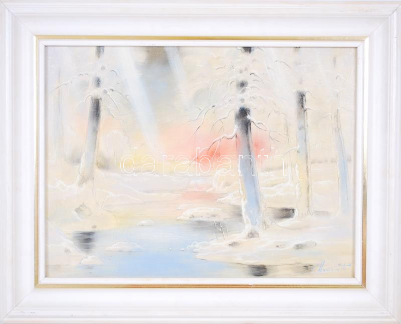 Leírás: Horváth jelzéssel: Téli fények. Olaj, farost, szép keretben 40×50