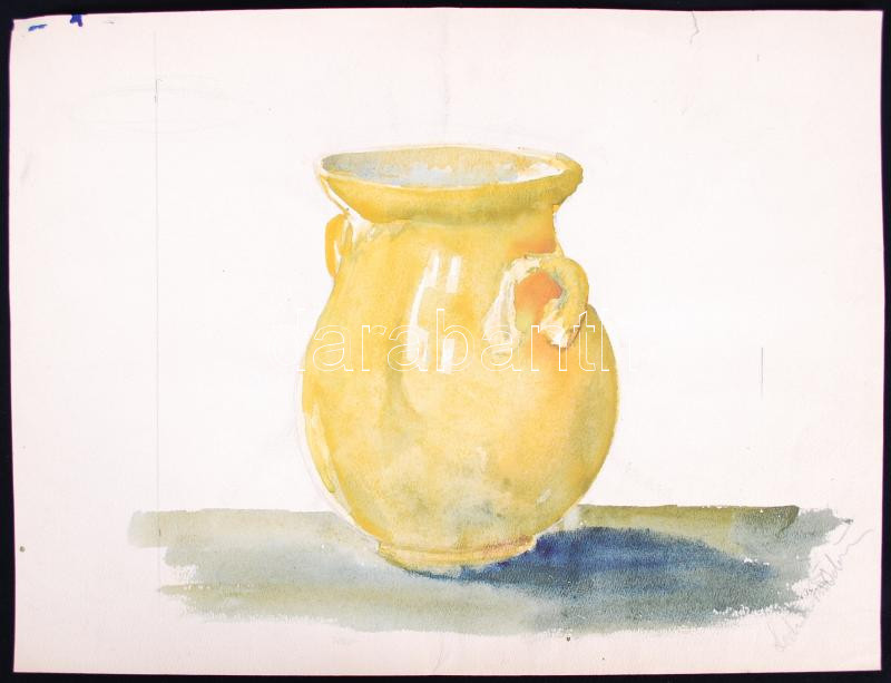 Leírás: Kismarty Lechner Ödön (1916-2001): Sárga váza. Akvarell, papír, jelzett, 28×46 cm