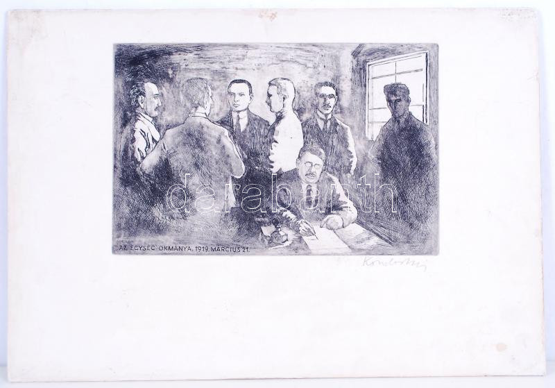Kondor Lajos (1926-2006): Az egység okmánya, 1919. március 21. Rézkarc... https://www.darabanth.com/hu/182-Gyorsarveres/182.0/Festmeny-mutargy-papirregiseg-egyeb/Festmenyek-es-grafikak~400002/Kondor-Lajos-1926-2006-Az-egyseg-okmanya-1919-marcius-21-Rezkarc-karton-jelzett-34x49cm~II654300
