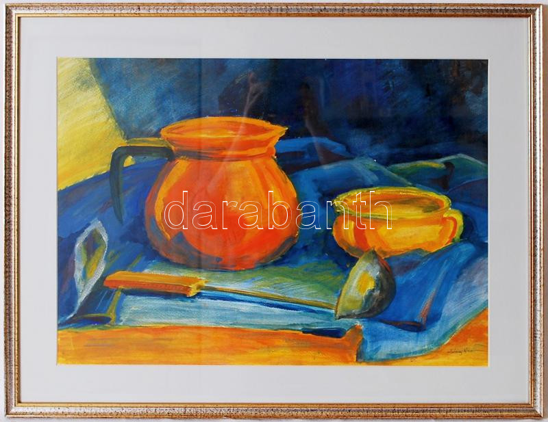 Láng Éva: Merőkanalas csendélet. Vegyes technika, papír-karton, jelzet... https://www.darabanth.com/hu/182-Gyorsarveres/182.0/Festmeny-mutargy-papirregiseg-egyeb/Festmenyek-es-grafikak~400002/Lang-Eva-Merokanalas-csendelet-Vegyes-technika-papir-karton-jelzett-uj-szep-keretben-49~II599253