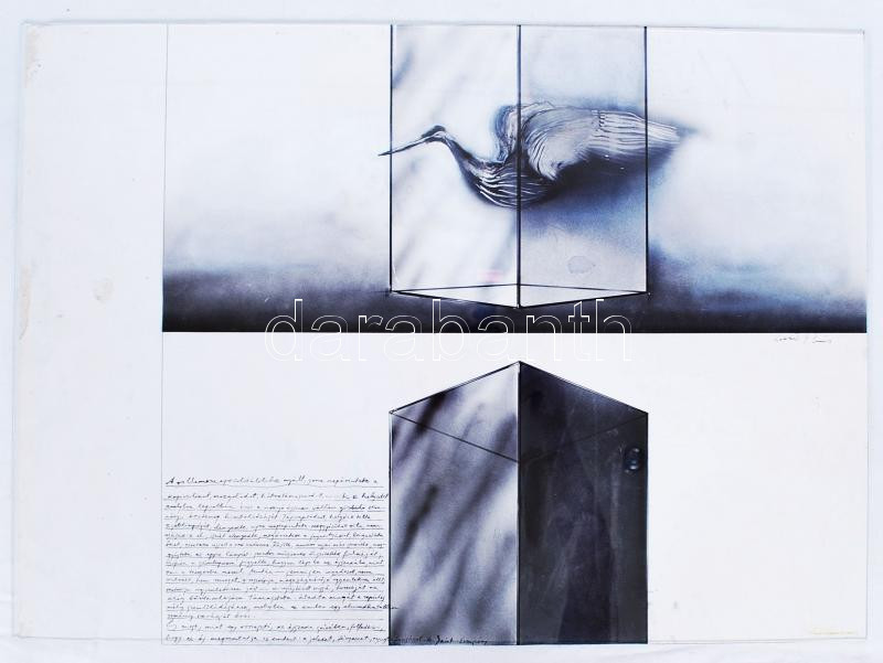 Leírás: Linn Tamás: Hommage Antoine de Saint-Exupéry. Vegyes technika, fotó papír, jelzett, 42×55 cm