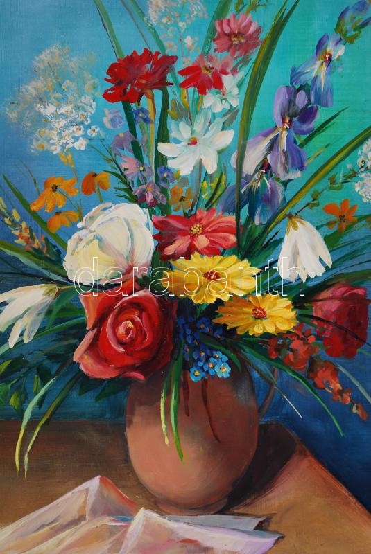 Lukács József: Virág csendélet. Olaj, farost, jelzett, 70×50 cm https://www.darabanth.com/hu/182-Gyorsarveres/182.0/Festmeny-mutargy-papirregiseg-egyeb/Festmenyek-es-grafikak~400002/Lukacs-Jozsef-Virag-csendelet-Olaj-farost-jelzett-70C39750-cm~II615017
